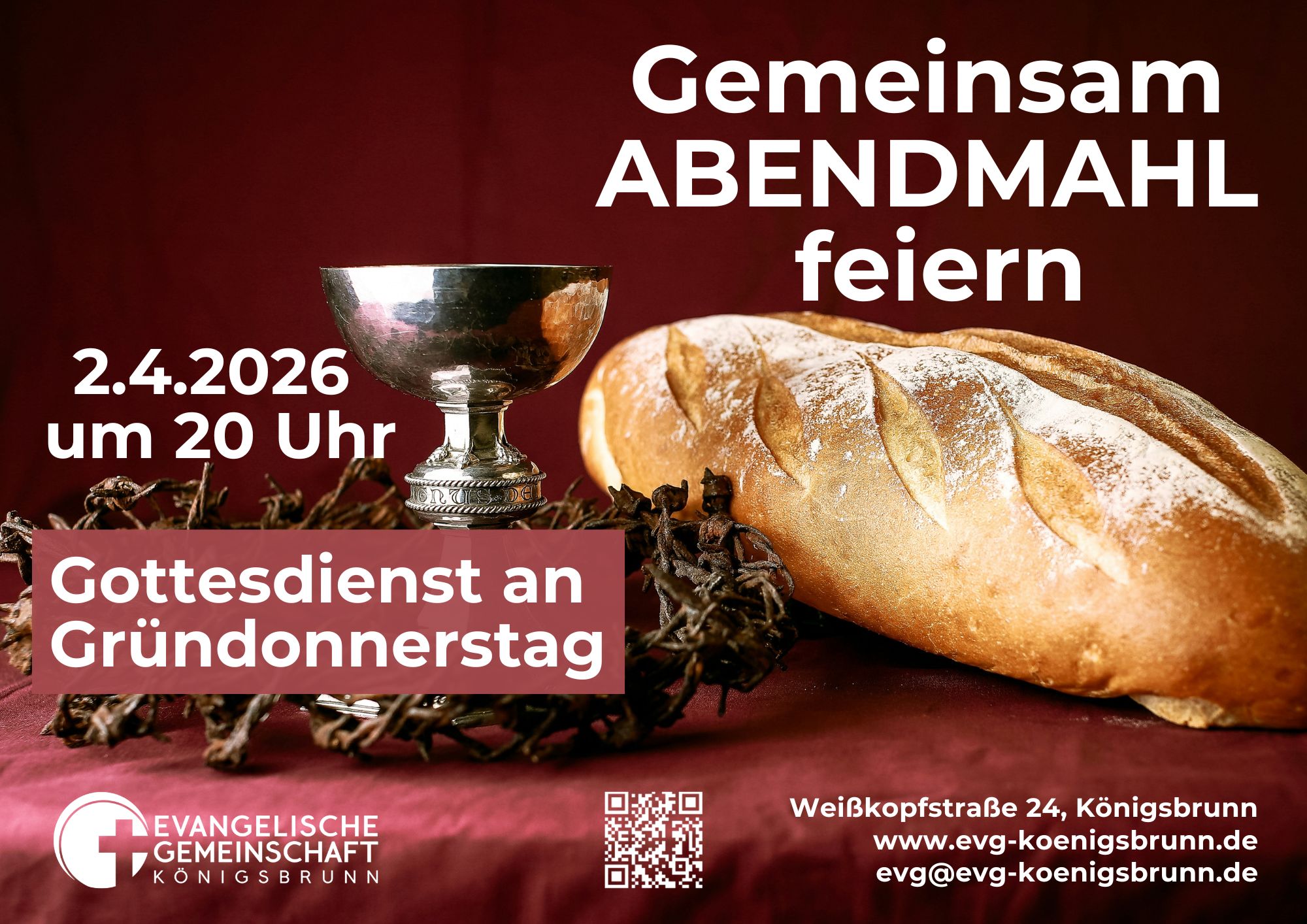 Wir laden dich ein, am Gründonnerstag bewusst das Abendmahl zu feiern und dich damit auf die Ostertage einzustimmen.