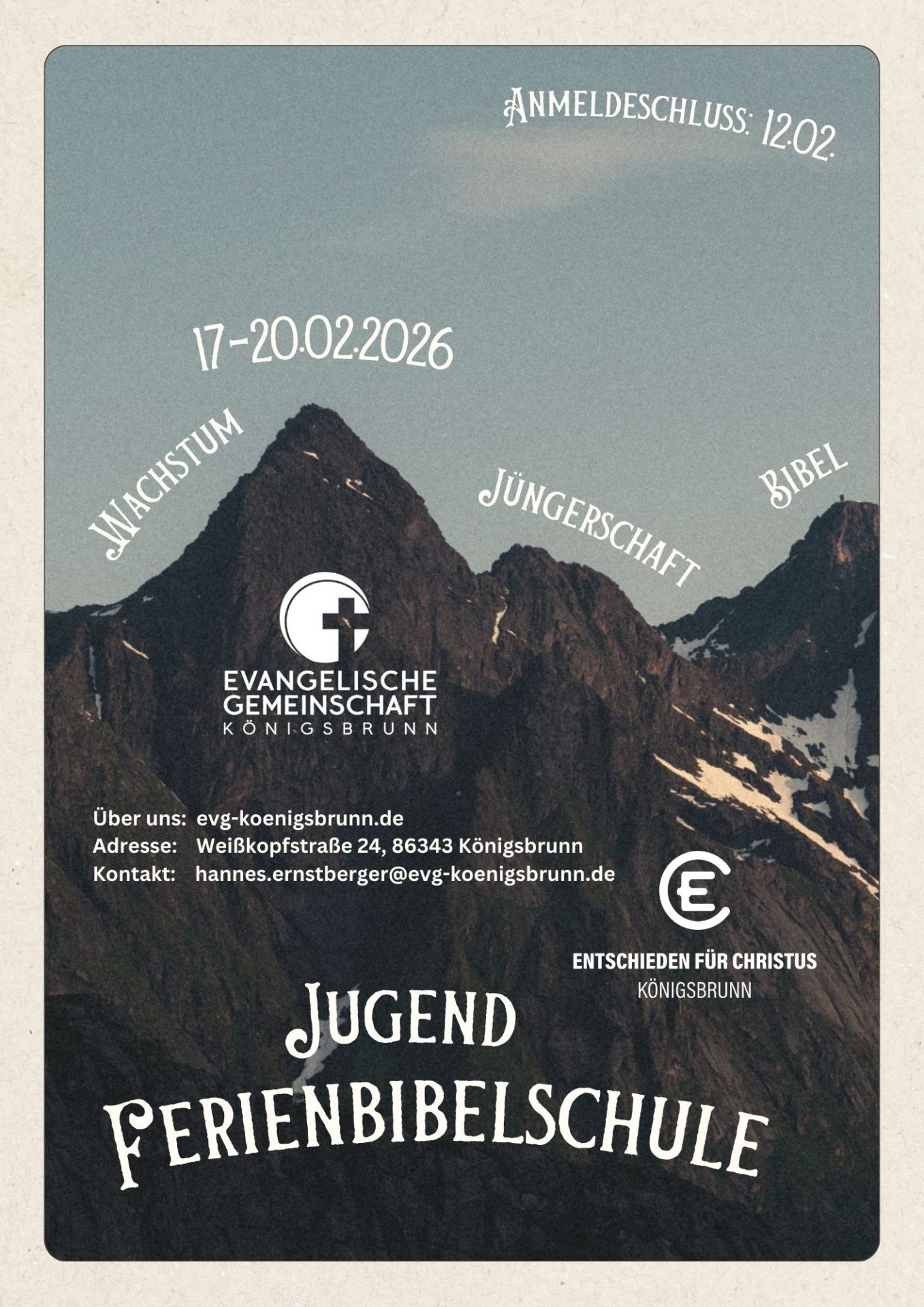 Wenn du irgendwo zwischen 12 und 30 Jahren alt bist, bist du herzlich eingeladen, in den Faschingsferien an der Ferienbibelschule teilzunehmen.